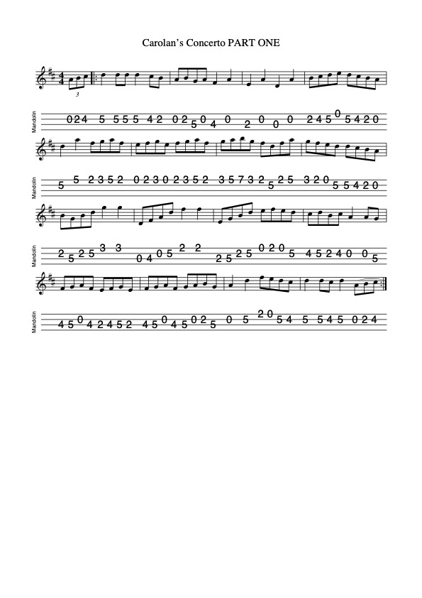 The Fiddler’s Return Jig (6/8), D Major. I was introduced to the compositions of Sean Quinn, accordionist, keyboard player, guitarist and composer from Cushendun, Co. Antrim by Bill Black who (among a host of other musical and non-musical things!) publishes the superb website, http://capeirish.com Sean’s music is steeped in references to his stomping grounds, mainly in County Antrim. To access Sean’s lovely collection “Key Notes”, please visit http://www.keynotesirishmusic.com/index.html Mandolin tab here. Listen to me playing The Fiddler’s Return on my Belmuse EM-190 electric mandolin.