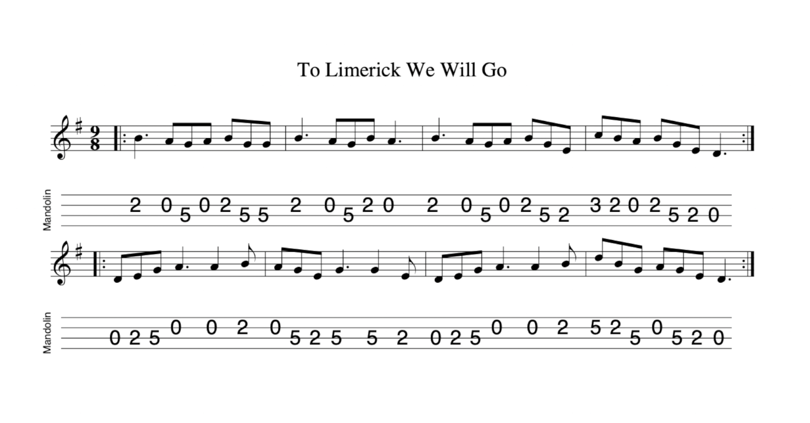 To Limerick We Will Go Slip Jig (9/8), D Mixolydian. Mandolin tab here. Listen to me playing To Limerick We Will Go on my Revelation Jaguar electric mandolin.