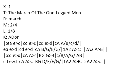 The March Of The One-Legged Men – a march in A Dorian