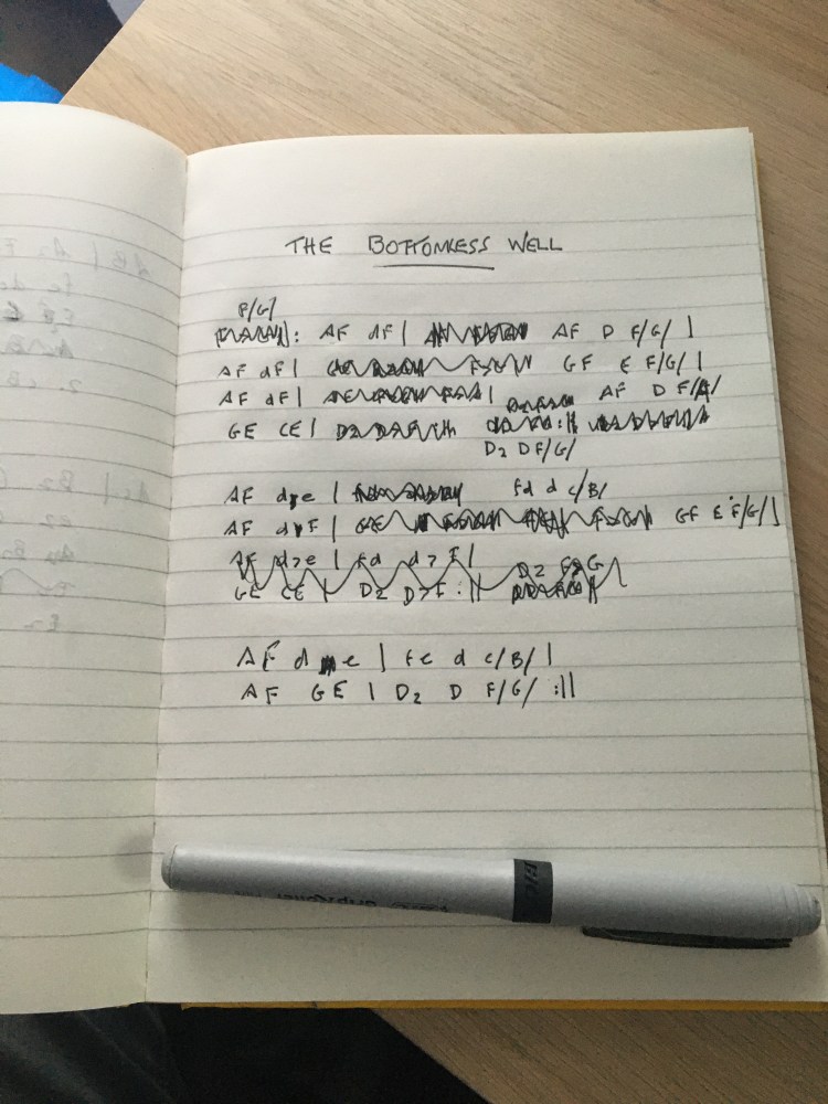 Added 15 January 2022. This morning on Twitter I praised the work of a musician who operates in a very different niche from me but is extremely prodigious (and proficient), whose output I greatly admire. I described his work as “a bottomless well”. That phrase got me to thinking and a short while later I found myself with my mandolin in hand, conjuring up a new tune to be called, of course, The Bottomless Well.
