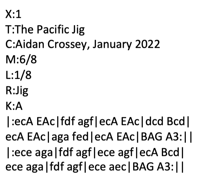 Added 29 January 2022. A few days ago I received an unexpected and incredibly generous donation from someone based in New York who is finding my website very useful in getting to grips with playing Irish traditional music on the mandolin. One of the elements of their address contains the word “Pacific” and as I was writing this tune, the name came to me as a fitting tribute to his generosity. The Pacific Jig. Mandolin tab here. Listen to me playing The Pacific Jig on my Paris Swing Macaferri mandolin. ABC below: