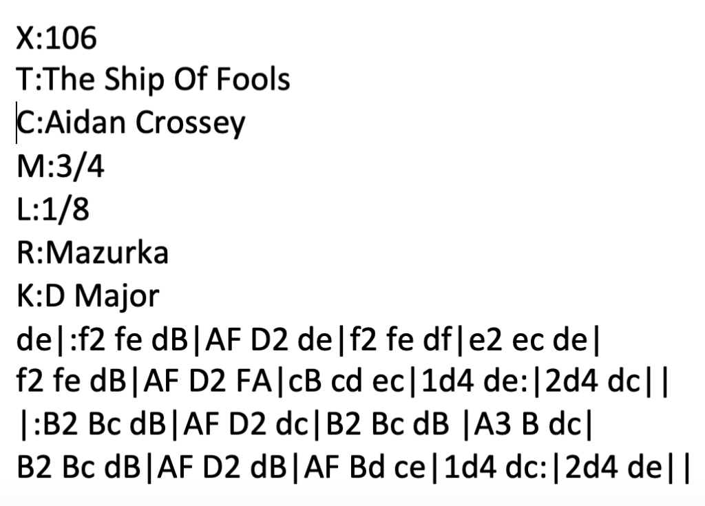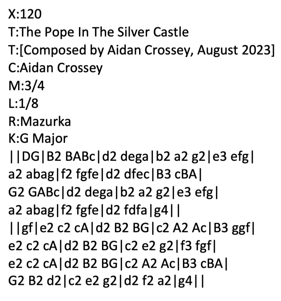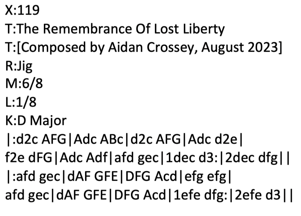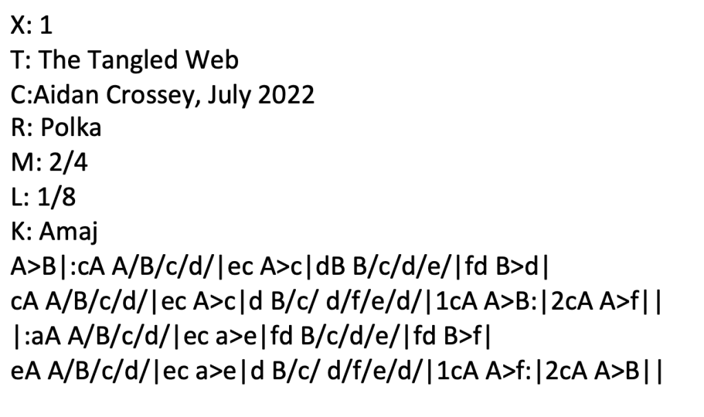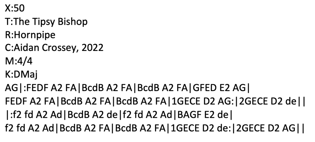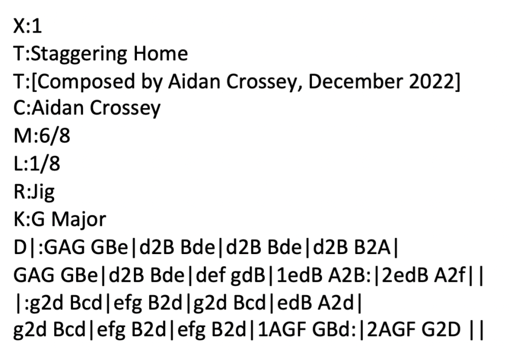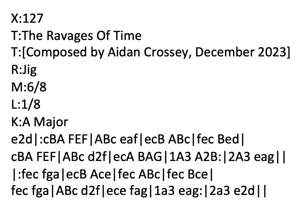 A few hours later, after having been out with my partner to do a bit of shopping, I sat down with the first draft of the tune and decided that it could do with a few tweaks. The second – and as it happened – final draft of the tune looked something like this: