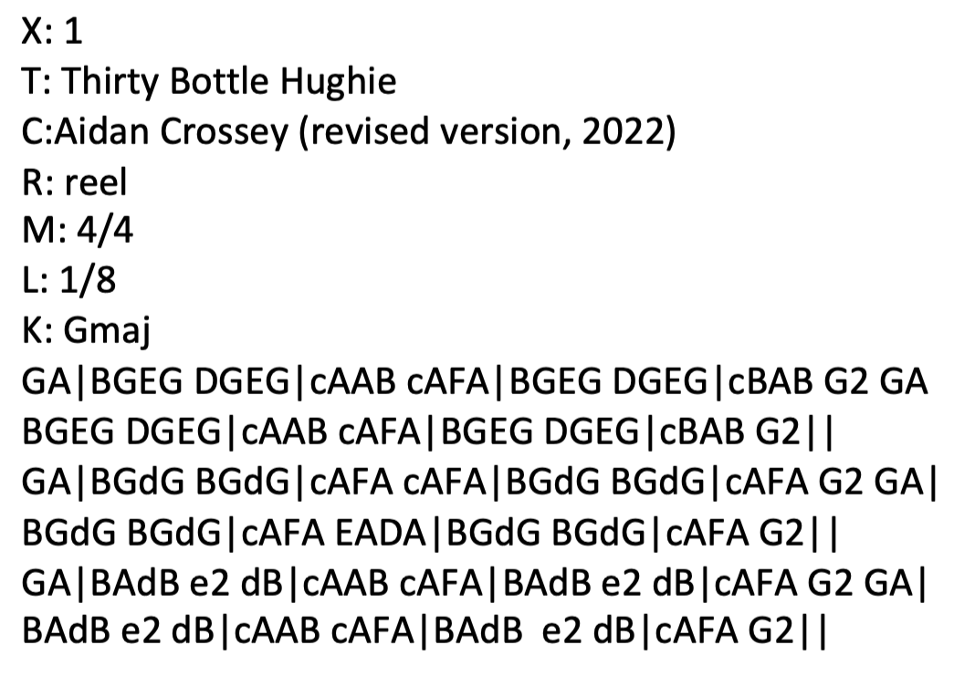 ABC of the original version of the tune and the tweaked version below.