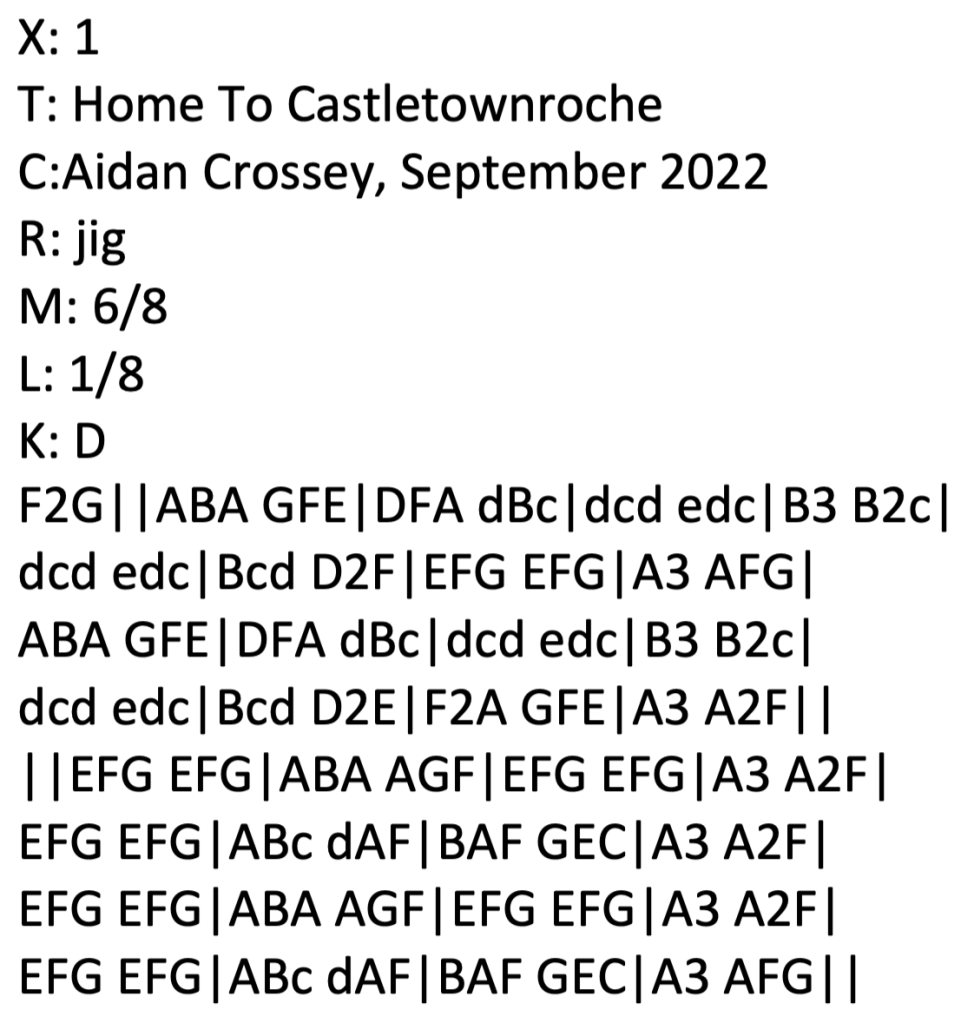 Home To Castletownroche – a jig in D Major