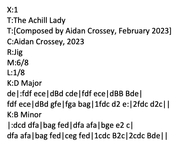 The Achill Lady – a jig in D Major (part 1) and B Minor (Part 2)