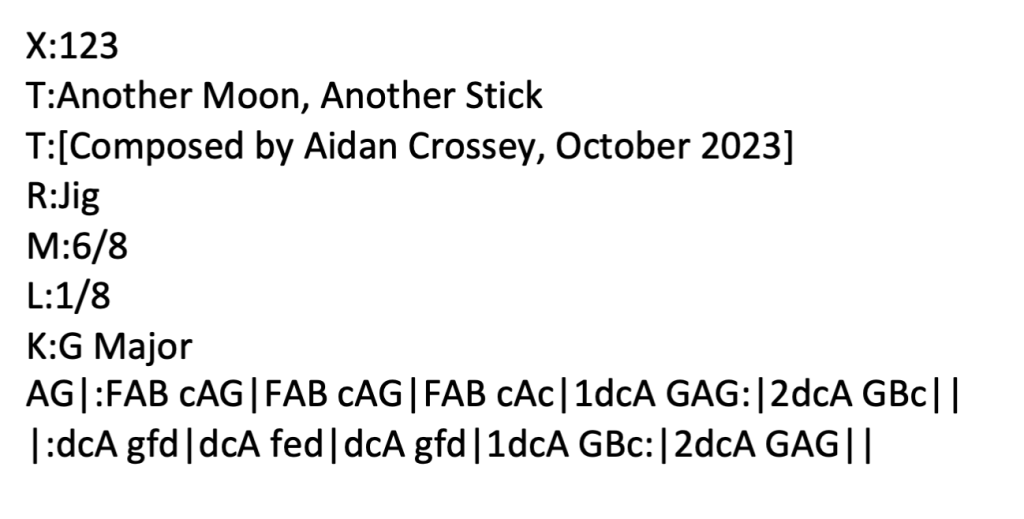 Another Moon, Another Stick – a 16-bar jig in G Major